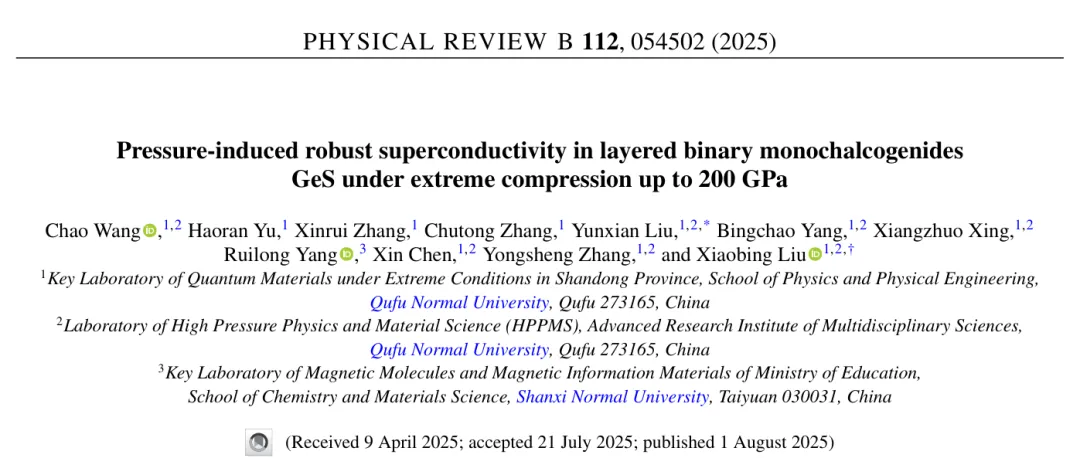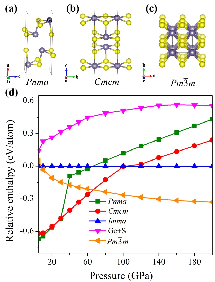 1.极端高压下的相变与超导:首次在层状二元硫族化合物GeS中观察到高压诱导的金属-超导转变,并揭示了其相变序列(Pnma→Cmcm→Pm-3m),为理解二维材料在高压下的行为提供了新视角。