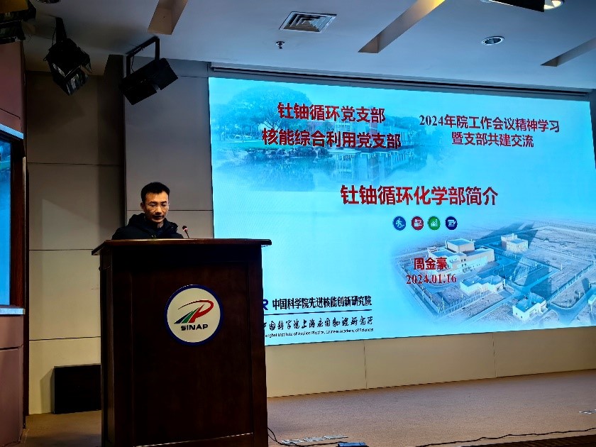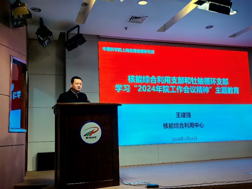 为了深入学习中国科学院2024年度工作会议精神,1月16日上午,中国科学院上海应用物理研究所核能综合利用党支部和钍铀循环党支部共同举办“学习2024年院工作会议精神”主题党日活动。活动邀请了所务委员、党委委员王建强进行领学,带领大家深入学习侯建国院长《加快抢占科技制高点 为实现高水平科技自立自强和建设科技强国再立新功》的工作报告。本次活动由两个支部联合共建,核能综合利用党支部书记张林娟和钍铀循环党支部书记周金豪分别对研究中心及部门的概况、科研方向做了介绍,相关部门成员包括党员、学生党员和部门员工共60余人参加了此次活动。