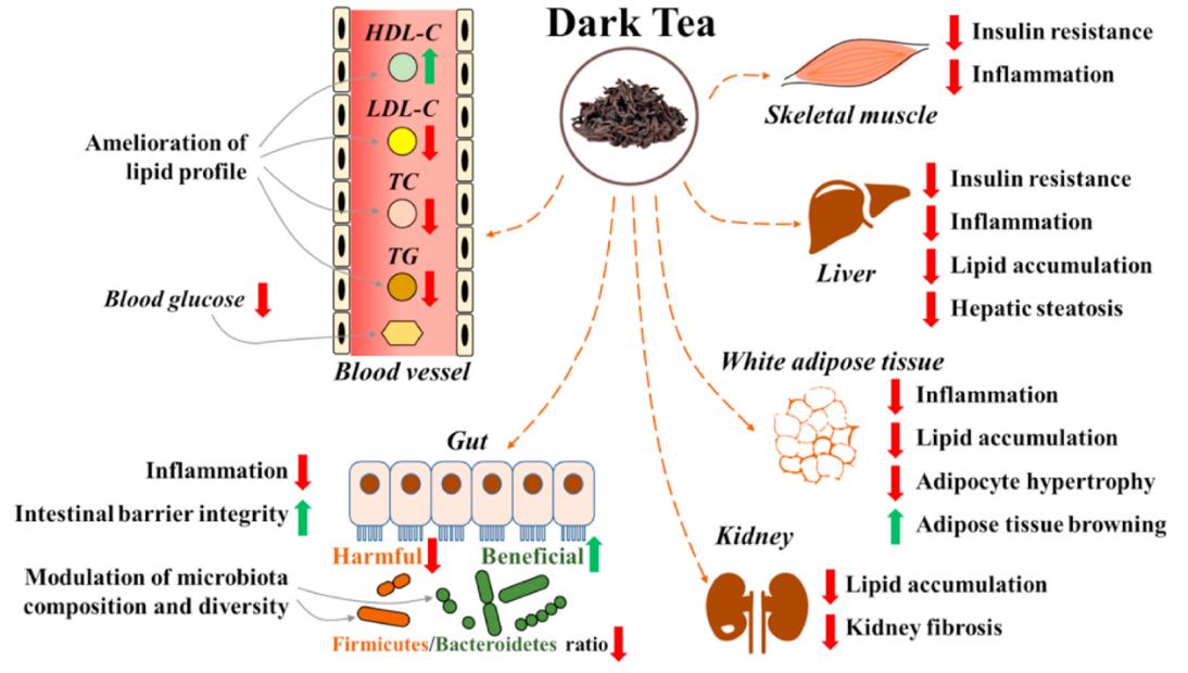 Lin, F. J., Wei, X. L., Liu, H. Y., Li, H., Xia, Y., Wu, D. T., Zhang, P. Z., Gandhi, G. R., Hua-Bin Li, & Gan, R. Y. (2021). State-of-the-art review of dark tea: From chemistry to health benefits. T rends in Food Science and Technology, 109 (August 2020), 126–138.