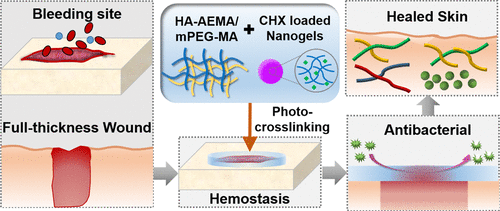 透明质酸和聚乙二醇杂化水凝胶包封具有止血和可持续抗菌特性的纳米凝胶,用于伤口愈合